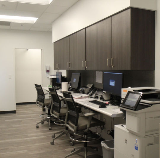 The suite consisted of exam rooms, lab with blood draw, administrative and private offices, large conference room, and staff lounge.